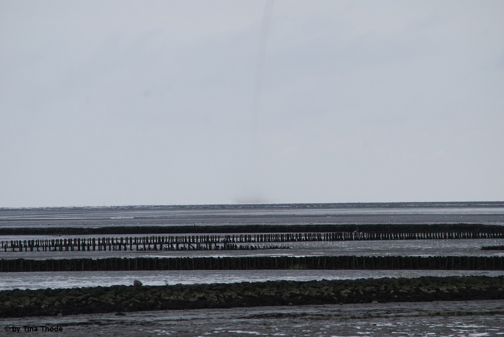 Zeitpunkt: ab 16:26 Uhr MESZ, Dauer: 3-5 Minuten. Beobachtung eines schlauchförmigen Tornados im Watt, südlich der Eidermündung, vor dem Wesselburenerkoog.