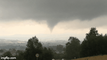 Zeitpunkt: gegen 19:40 Uhr MESZ. Beobachtung einer Trichterwolke im Bereich Heiningen / Eschenbach / Göppingen: "Ich habe heute gegen 19.40 Uhr von der Steige in Gammelshausen (Landkreis Göppingen, BW) folgende Wolkenformation fotografiert. Blick ist in Richtung Heiningen / Eschenbach / Göppingen. Irgendwo zwischen den drei Gemeinden dürfte sich die Trichterwolke befunden haben. Rotation auf die Entfernung konnte ich nicht direkt erkennen, allerdings deutet die Dynamik der Struktur und auch die Langlebigkeit (Gebilde war mind. 5 min sichtbar, von Bild 1 bis zum letzten Bild sind es 3 Minuten, bin dann noch zwei Minuten Richtung Heimat gefahren und der Trichter war noch sichtbar!) schon auf eine Trichterwolke hin. V.a in den Bildern 19-21 sieht man noch einen zusätzlichen "Fortsatz" nach unten, die Entwicklung war auch eindeutig von oben nach unten, daher sind angesaugte Fractus sehr unwahrscheinlich. Es gibt auch ein kurzes Video von dem Gebilde."